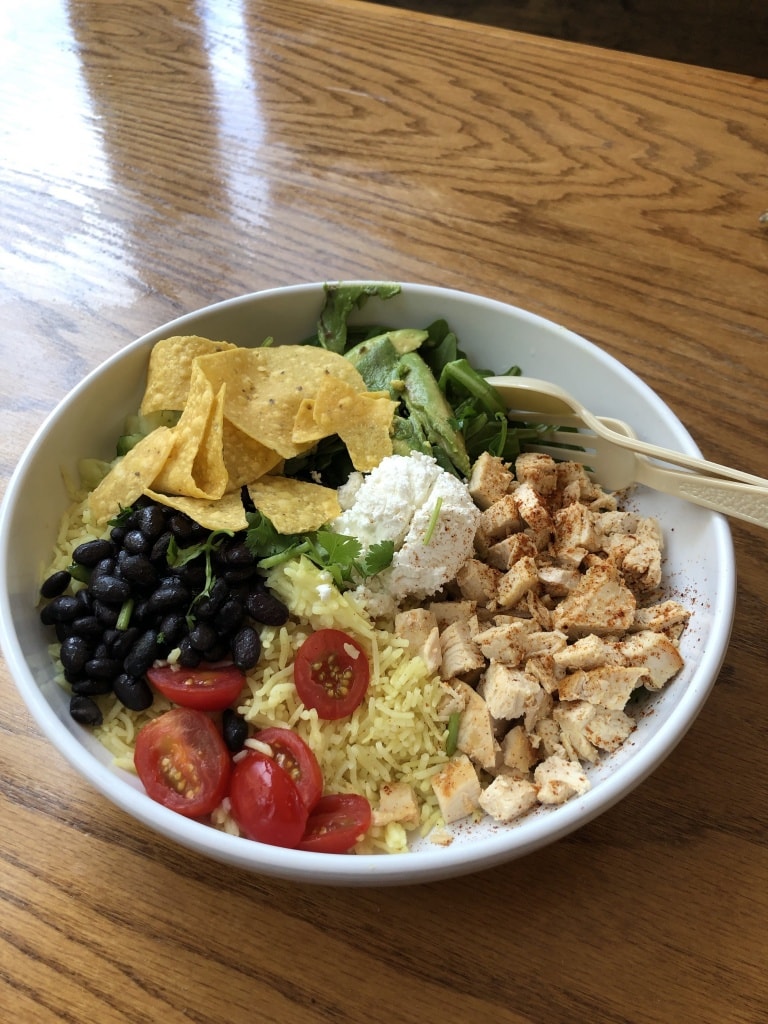 We didn’t eat out much this week but Riese and I did meet Matt near his office for lunch yesterday, which was a nice treat – we hit up Sweet Leaf and I had their Mexican-themed salad.