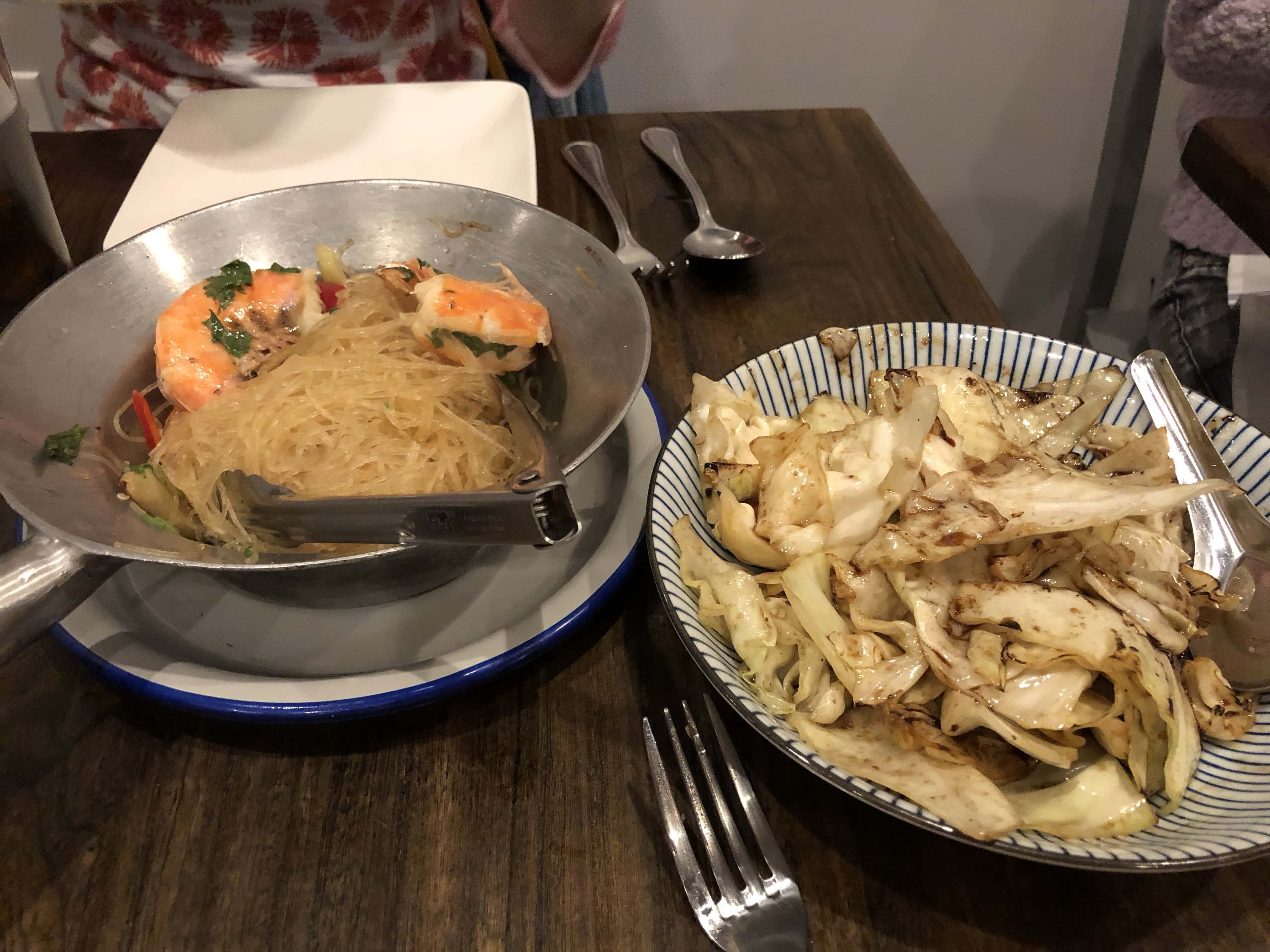 My favorite dish of the night, though, was actually the wok-fried cabbage (kalum tod nam pla) that came recommended by our server – the sauce was just garlic and fish sauce but man it was delicious… incredibly flavorful.