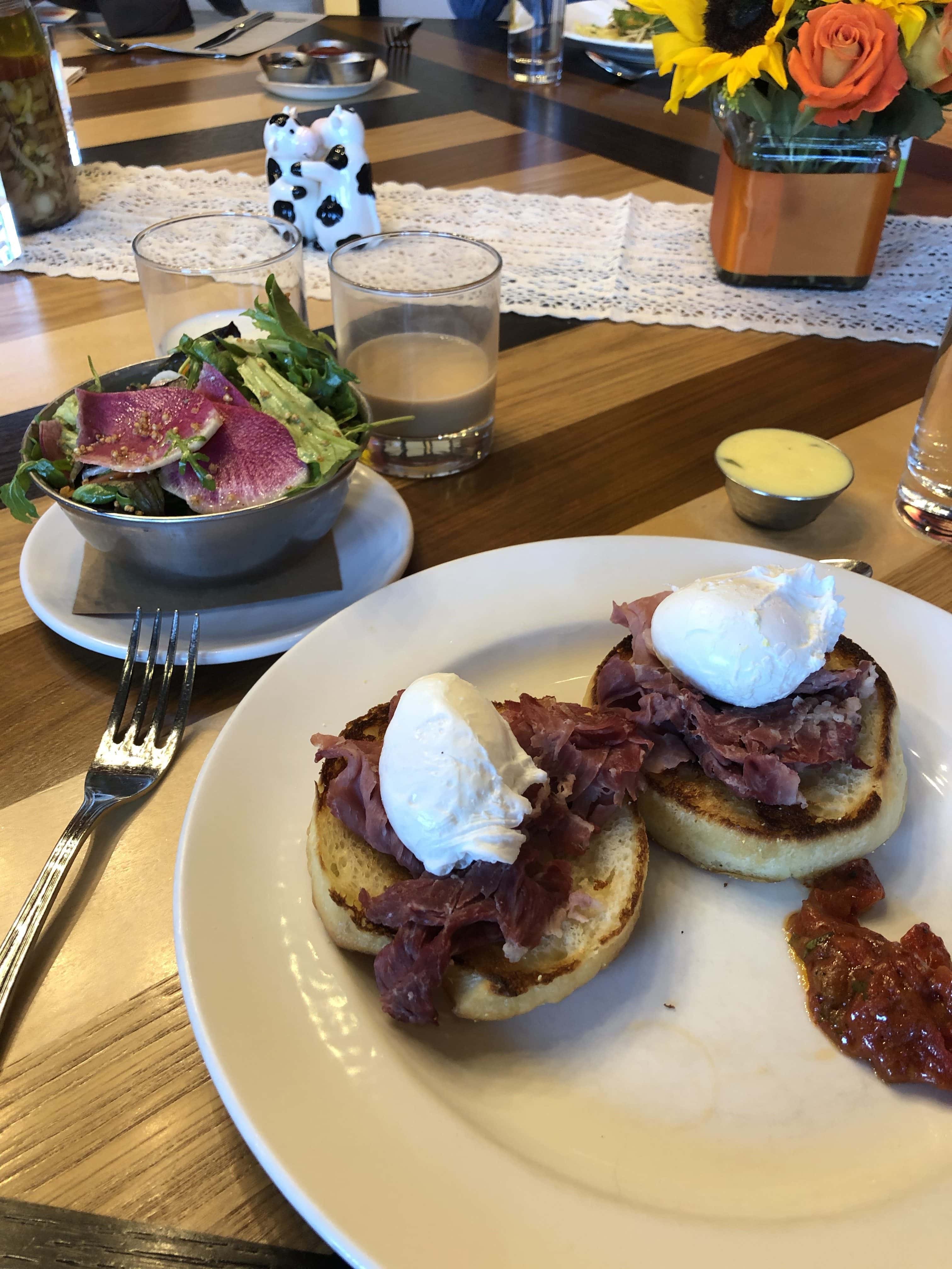 Another great meal was a breakfast event at Urban Farmer. Their shaved ham egg benedict with homemade toast was delicious, and the space was really pretty, too.