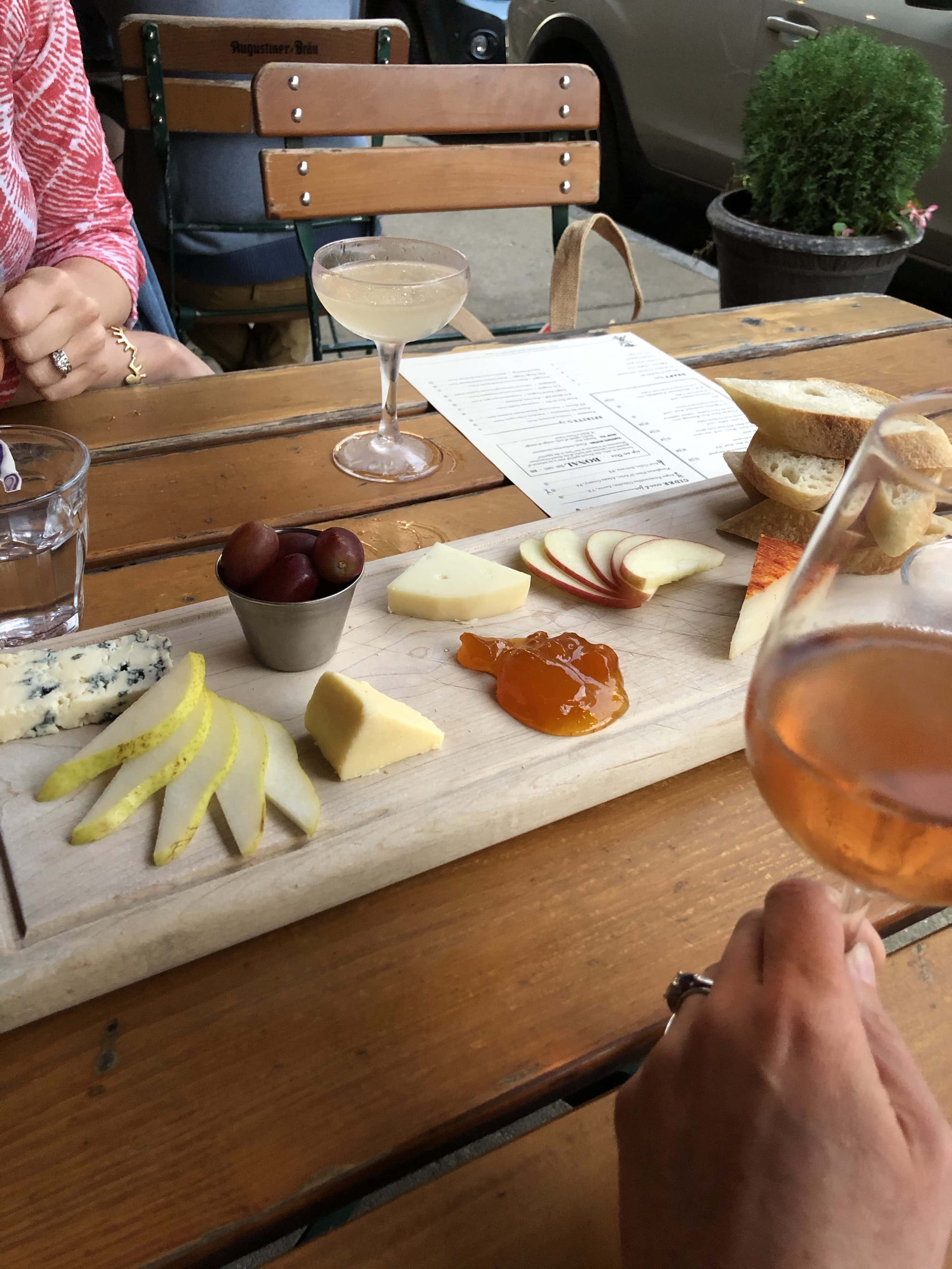 We started with happy hour – cider for me, a cocktail for her – and a cheese board at a cool French place called Good King Tavern.